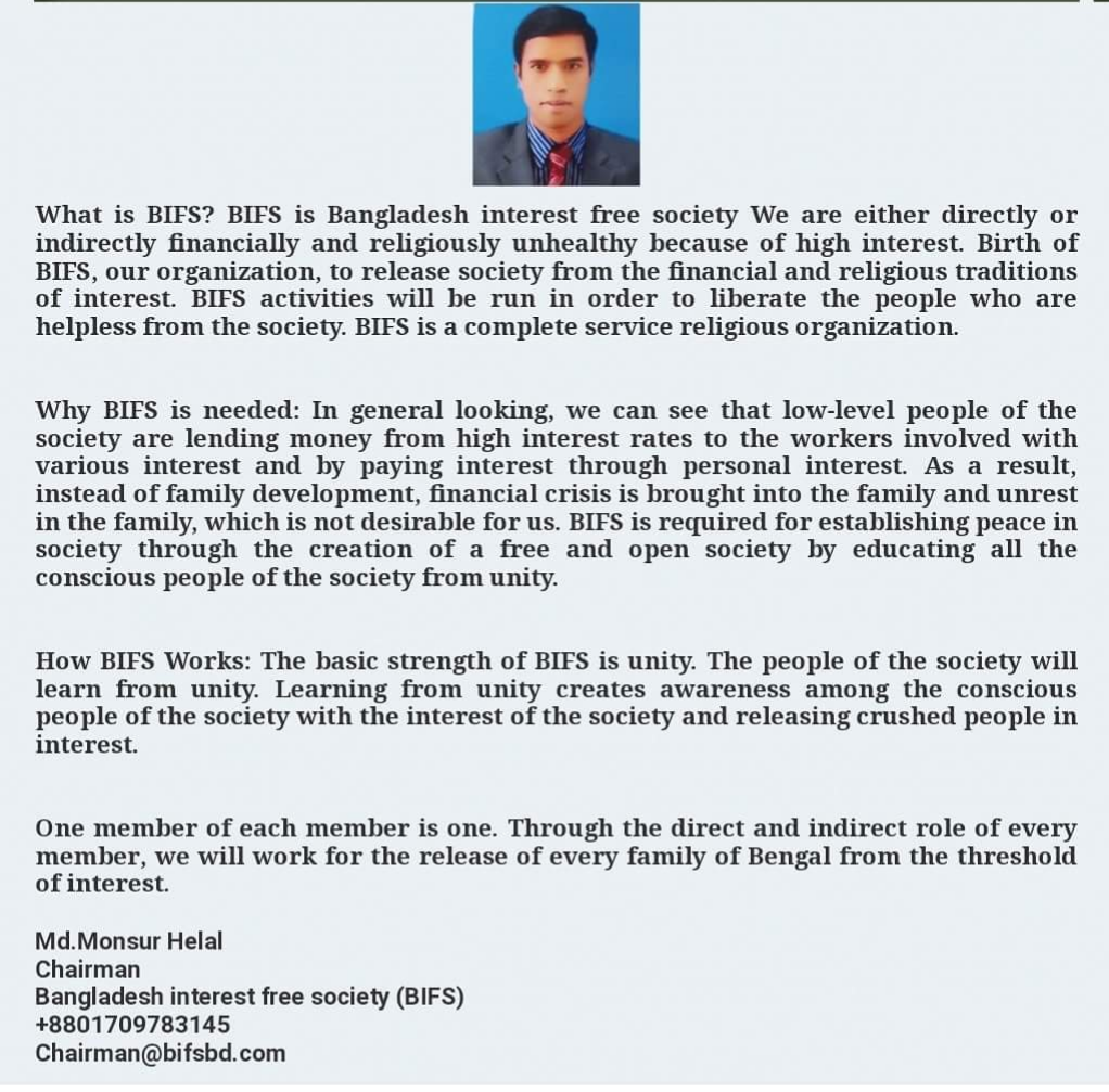 BIF S.(Bangladesh interest free society). সà§à¦¦ নয় সেবাই উদà§à¦¦à§‡à¦¶à§à¦¯à¥¤ |